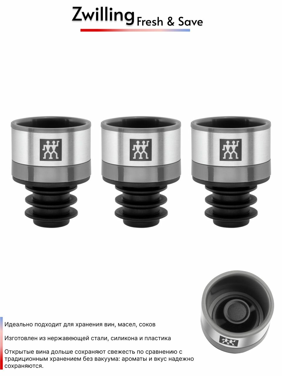 Пробка для вина Zwilling Fresh & Save, набор из 3 шт. вакуумные. интересное: