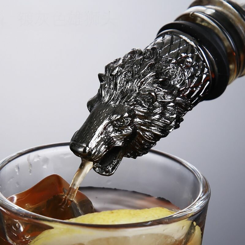 Насадка для вина с носиком в виде головы льва, цвет серебристый/ Носик для наполнителя вина в виде головы льва