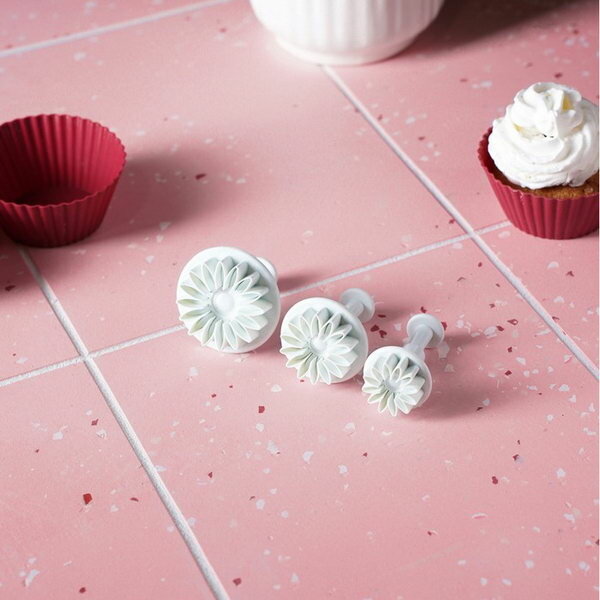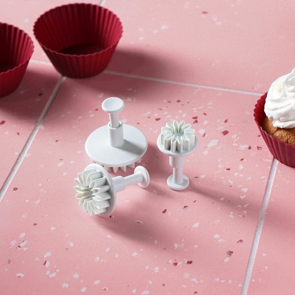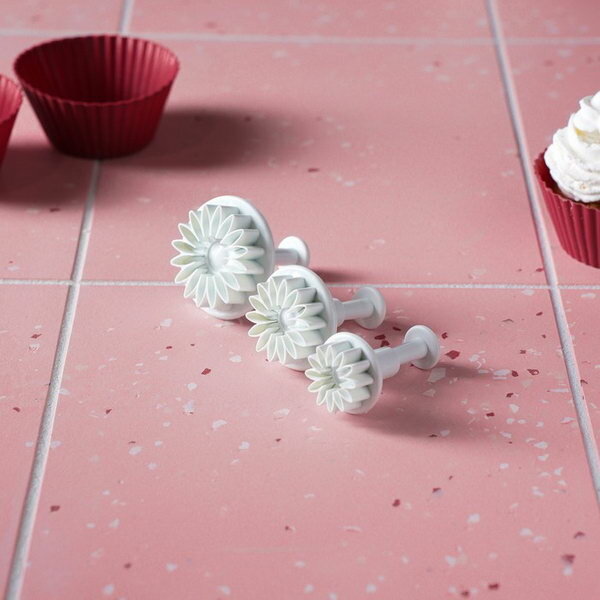 Плунжеры кондитерские "Герберы", набор 3 шт, размеры цветков: 4.3 см, 4.8 см, 5.5 см, пластик, белые интересное: