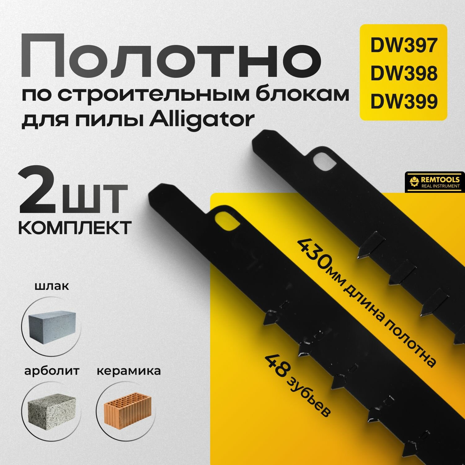 Полотно для пилы Аллигатор, Remtools, 430 мм, (Паротерм класс 12), Полотно для сабельной пилы по газоблокам, кирпичу, блокам интересное:
