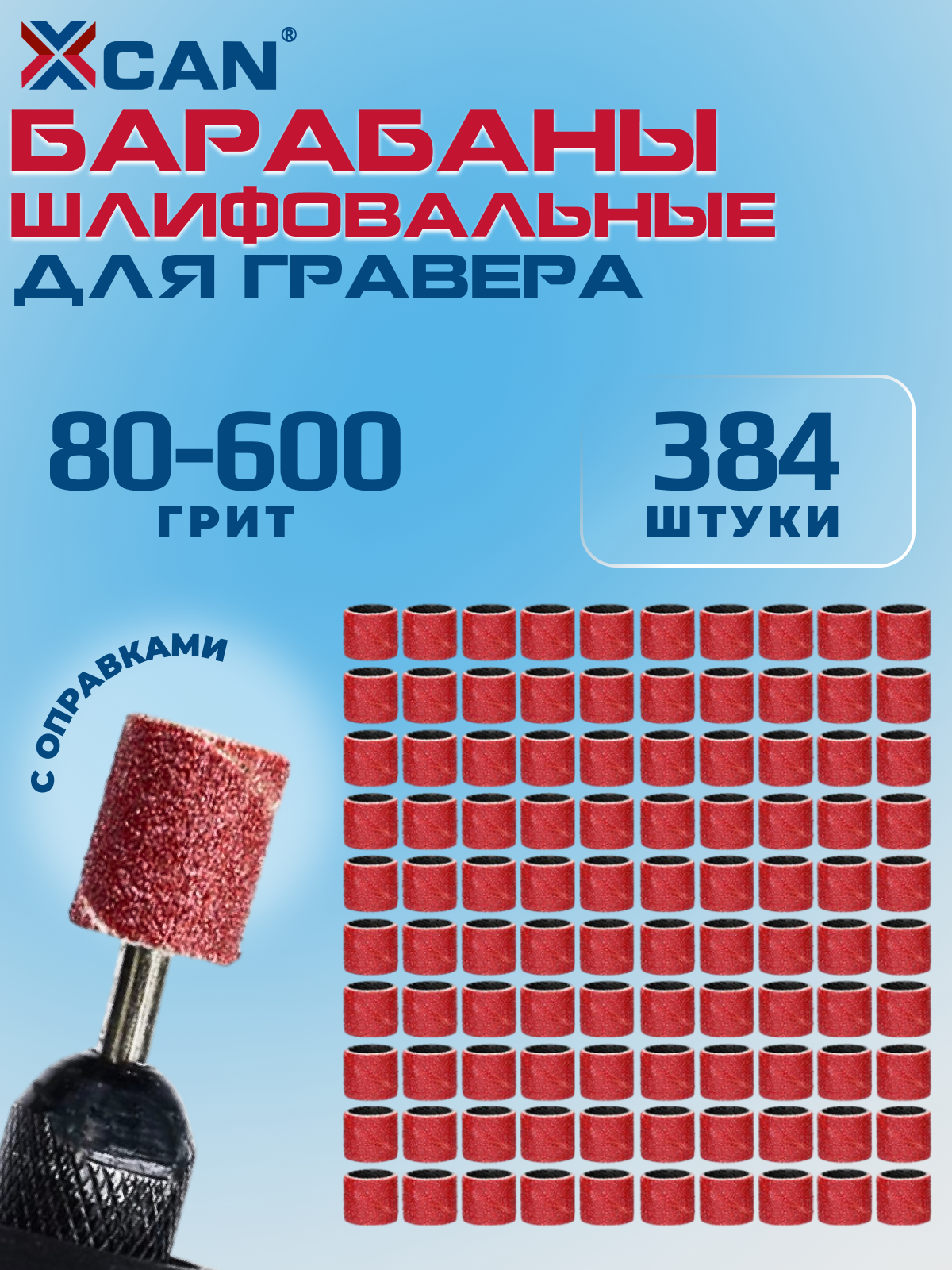 Набор шлифовальных барабанов для гравера XCAN в футляре, 384 шт.