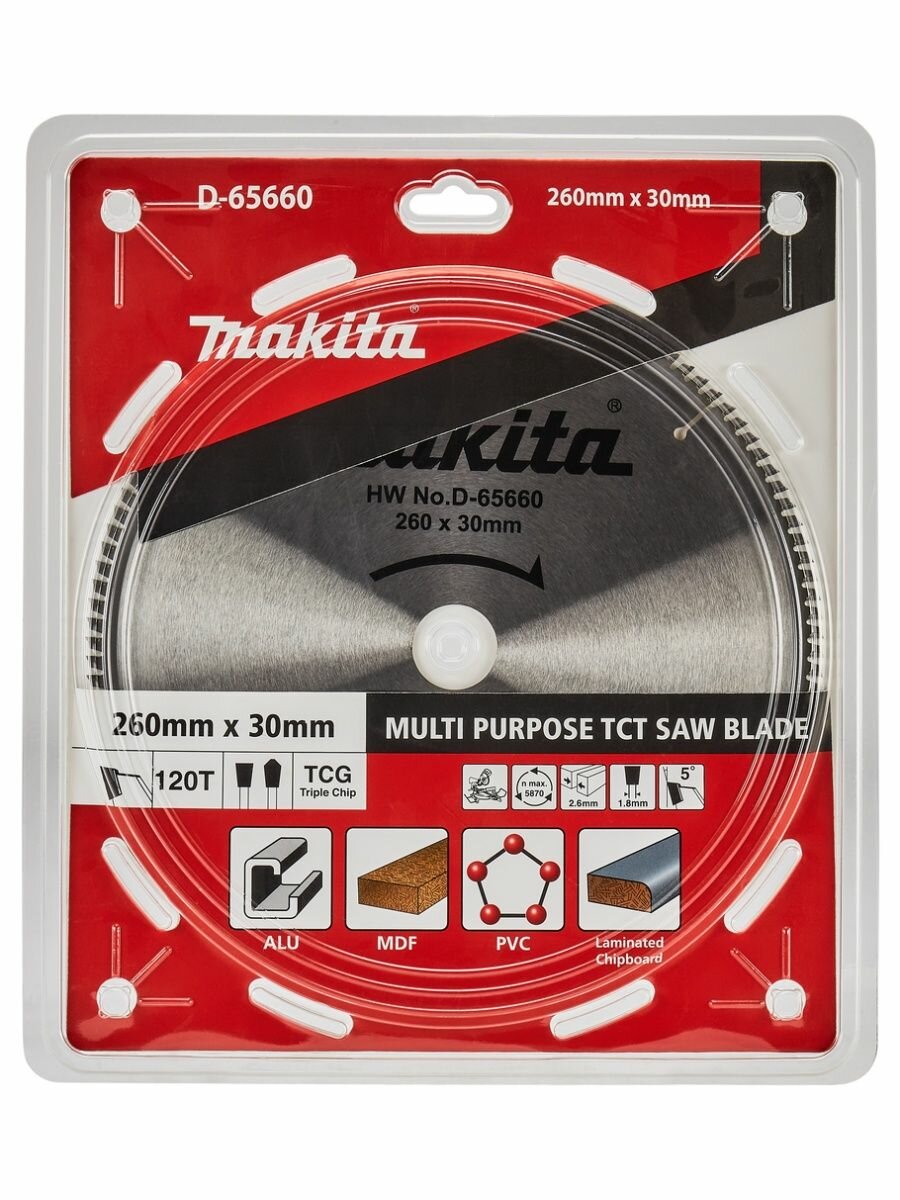 Пильный диск MAKITA 260x30x2.6/1.8 80z универсальный для алюминия/дерева/пластика (D-65648)