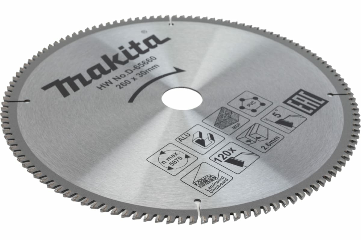 Купить Диск пильный Makita , ф260х30мм,120зуб, для алюминия\дерева\пластика