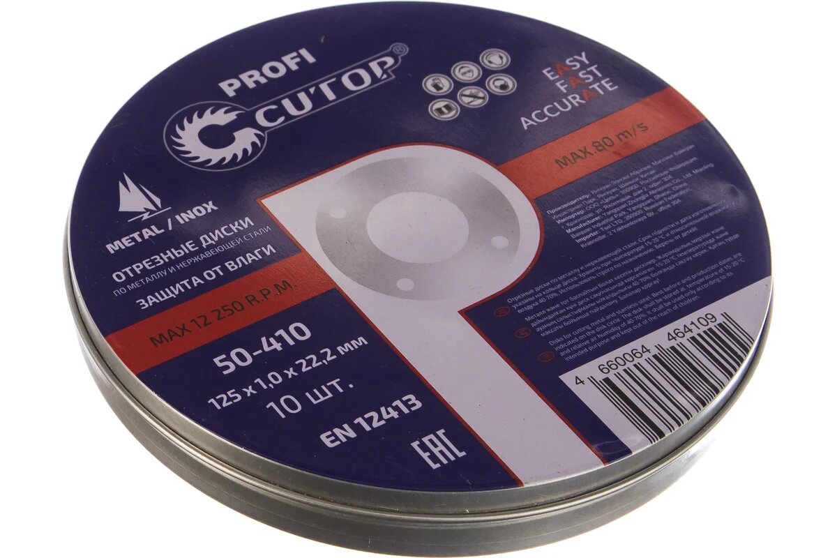 Диск отрезной профессиональный Cutop 50-410, по металлу и нержавеющей стали, Т41-125 х 1.0 х 22.2, Profi, 10 шт