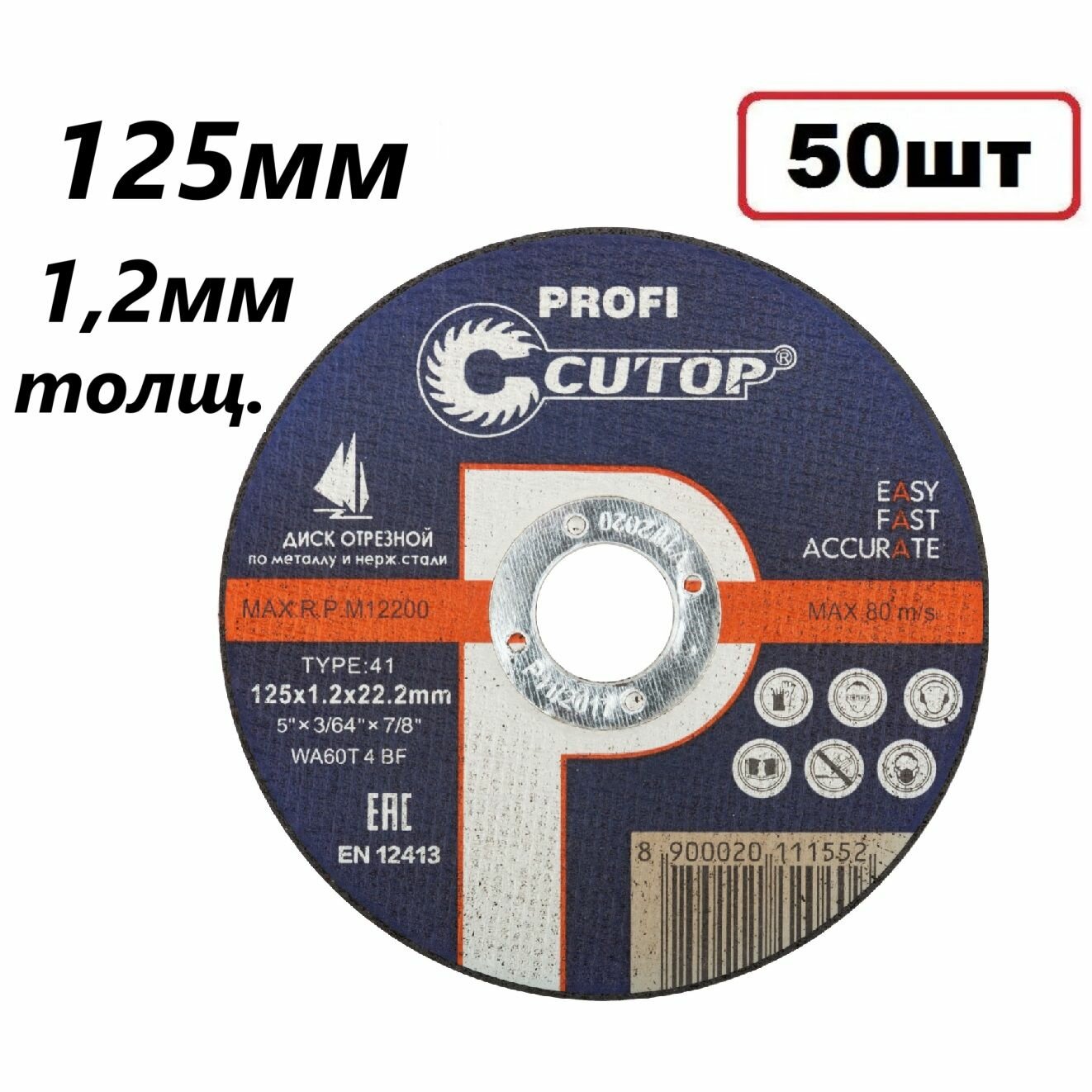Диск отрезной профессиональный Cutop 50-410, по металлу и нержавеющей стали, Т41-125 х 1.0 х 22.2, Profi, 10 шт