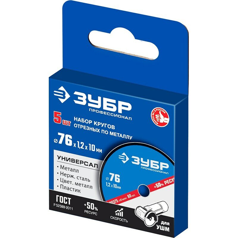 Набор кругов отрезныx по металлу ЗУБР X-2 76 x 1.2 x 10 мм, 5 шт, для мини УШМ, ″AB-76″, профессионал (36200-76-1.2-H5)
