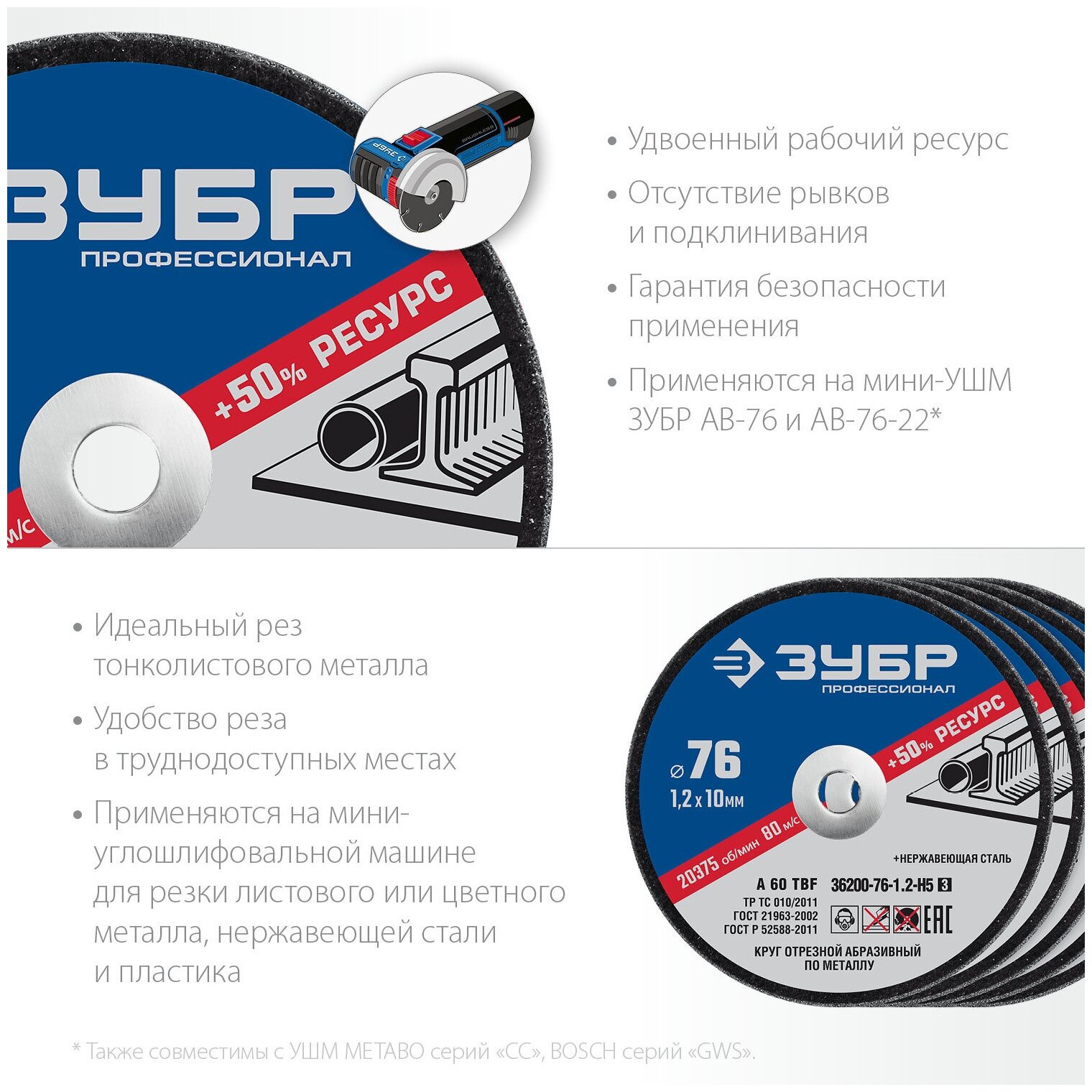 Ниже Вы можете прочитать отзывы на Набор 5 шт: Круги отрезные ″X-2″ по металлу 76х1,2х10 мм, ЗУБР, 36200-76-1.2-H5, ознакомится с подробными характеристиками, посмотреть интересные обзоры и фотографии на Набор 5 шт: Круги отрезные ″X-2″ по металлу 76х1,2х10 мм, ЗУБР, 36200-76-1.2-H5.