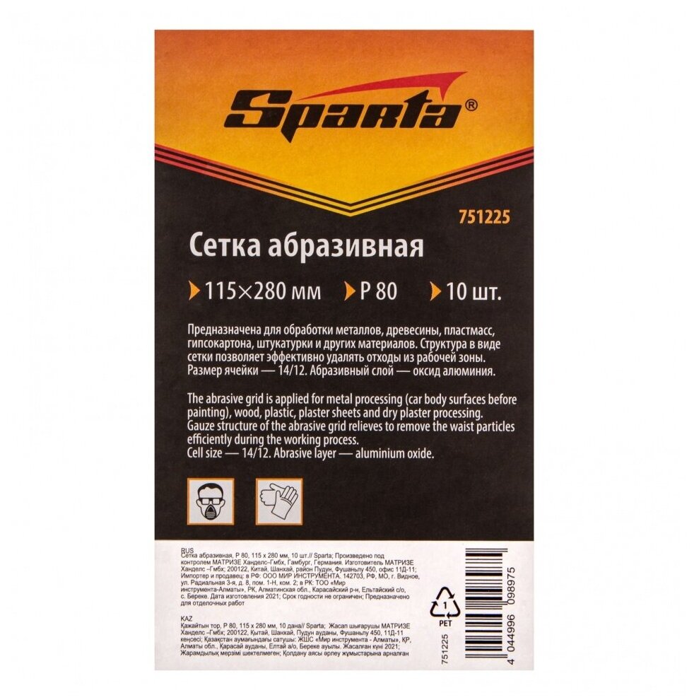 Сетка абразивная, P 80, 115 х 280 мм, 10 шт Sparta, 751225 интересное: