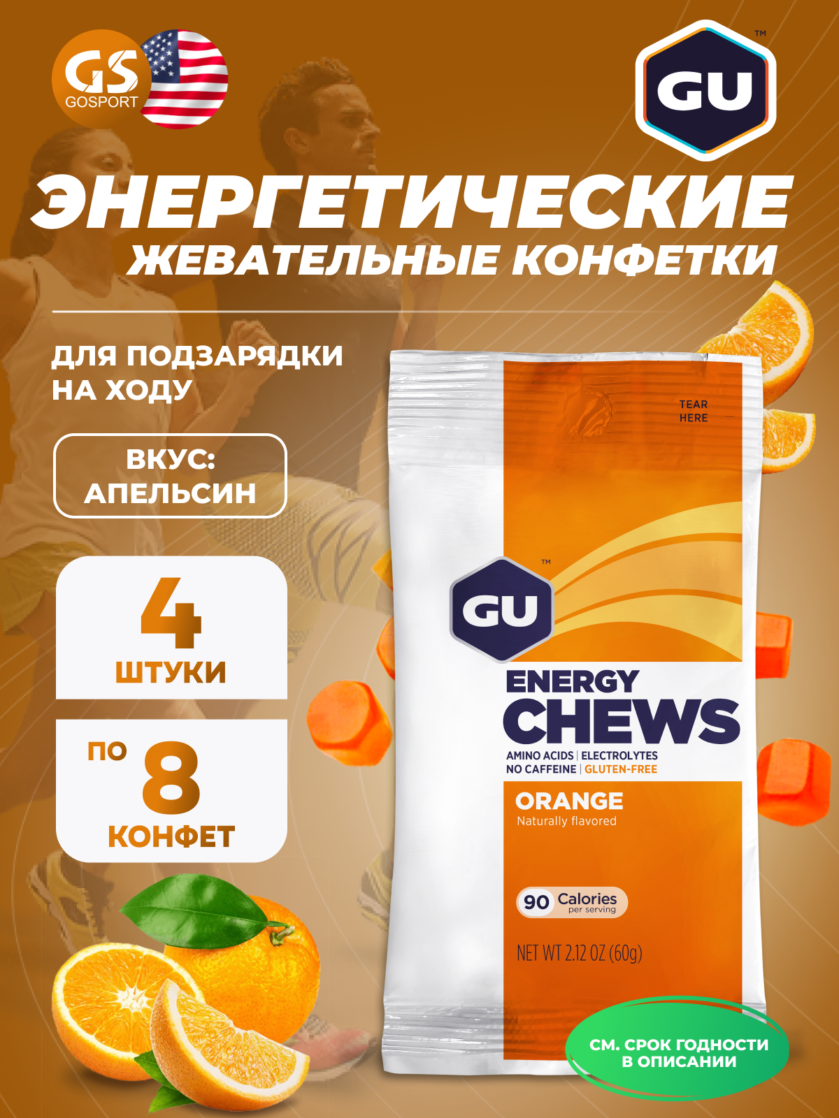 Конфетки GU ENERGY Мармеладки GU Energy Chews 4 x 60 г, Апельсин интересное: