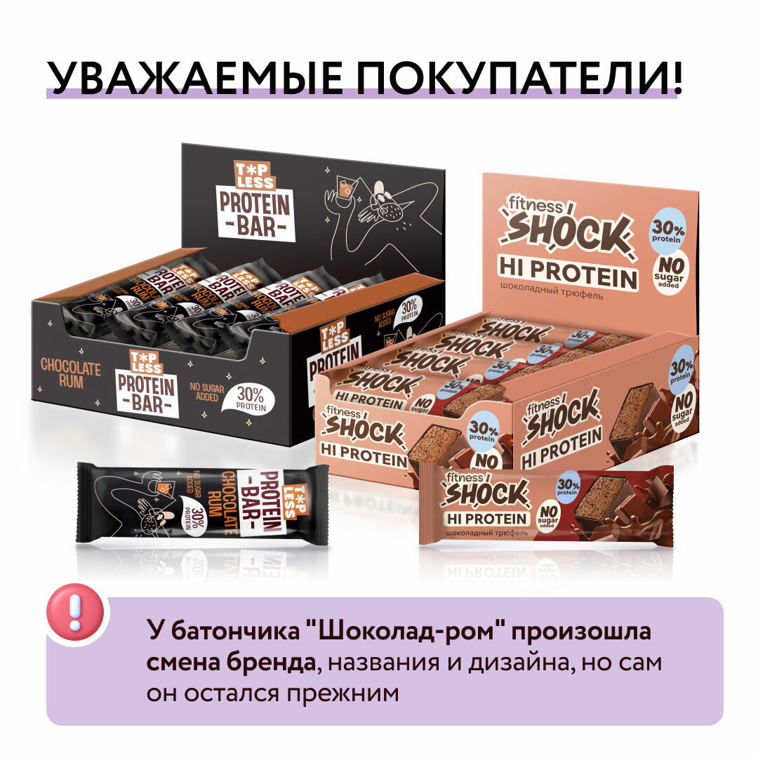 Батончики протеиновые COCKTAIL TopLess Шоколад и ром FitnesSHOCK без сахара 40гр 12 шт