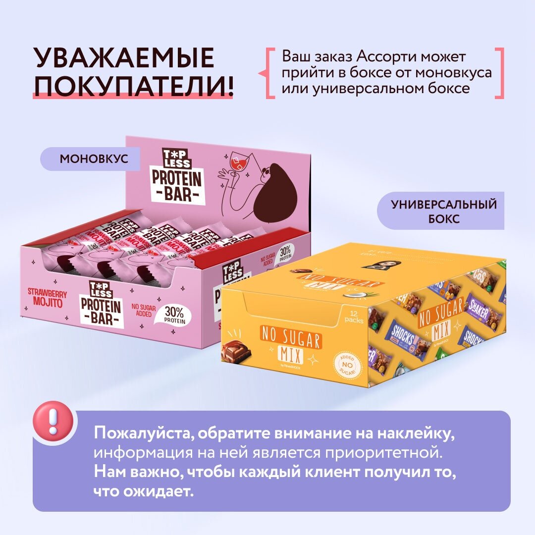 Протеиновые батончики FitnesSHOCK TOPLESS ассорти все вкусы 12 шт