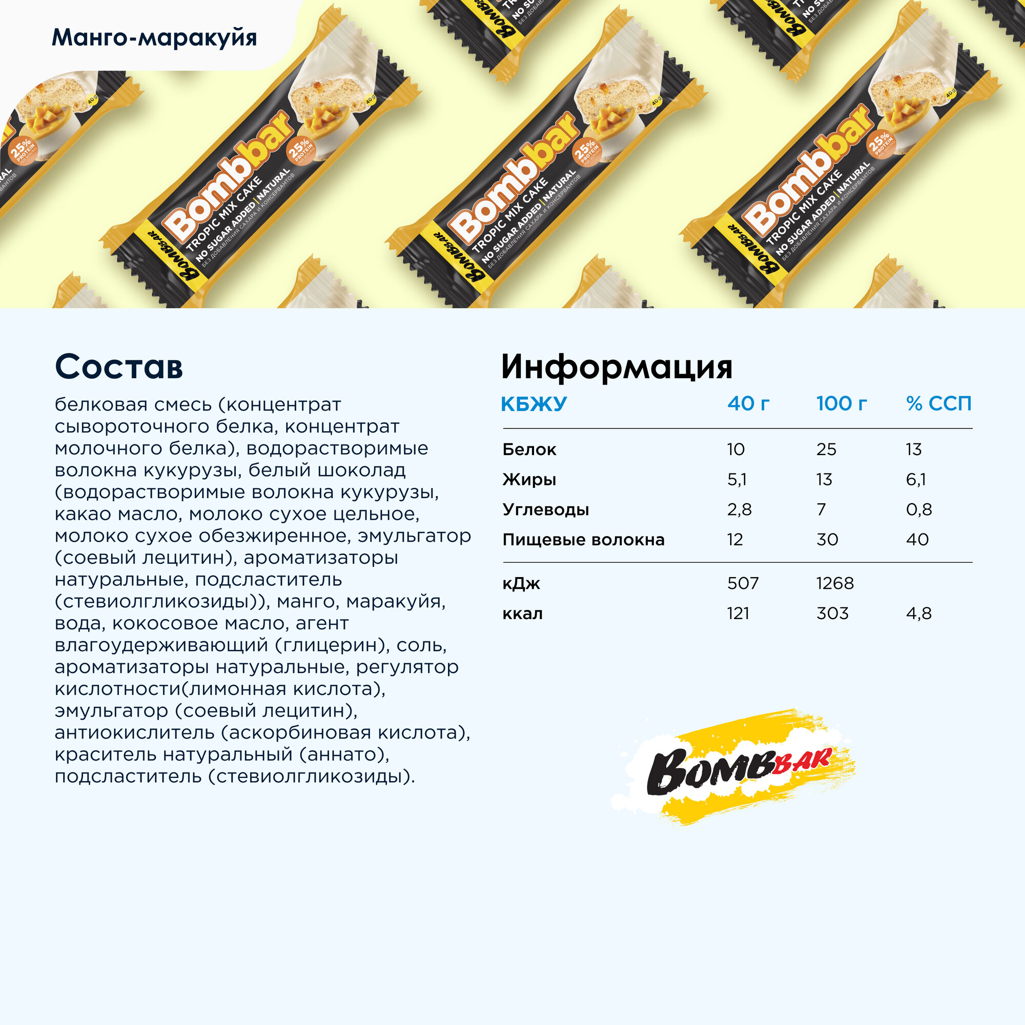 СохранитьBombbar Протеиновые батончики в шоколаде без сахара "Торт тропический микс", 30шт х 40г интересное: