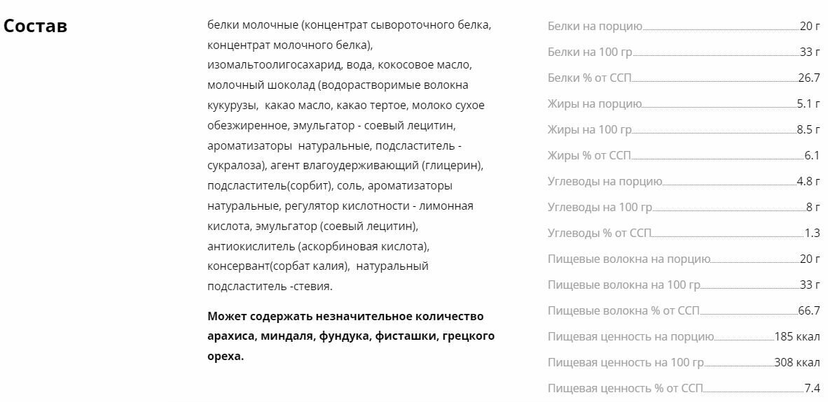| Диетические особенности | без ГМО / без глютена / без сахара |