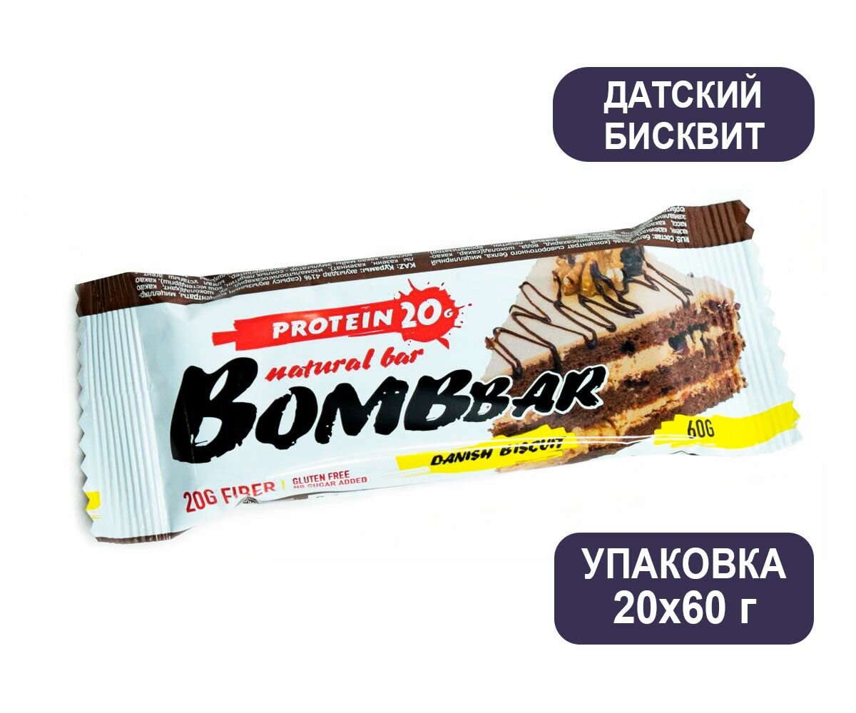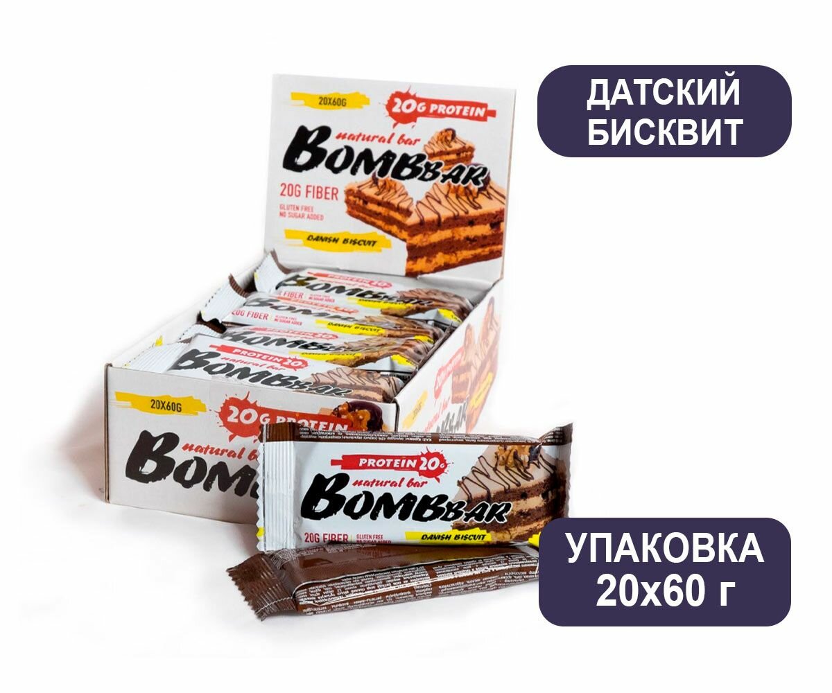 Купить BombBar протеиновый батончик 60 г, 20шт (Датский бисквит) без сахара