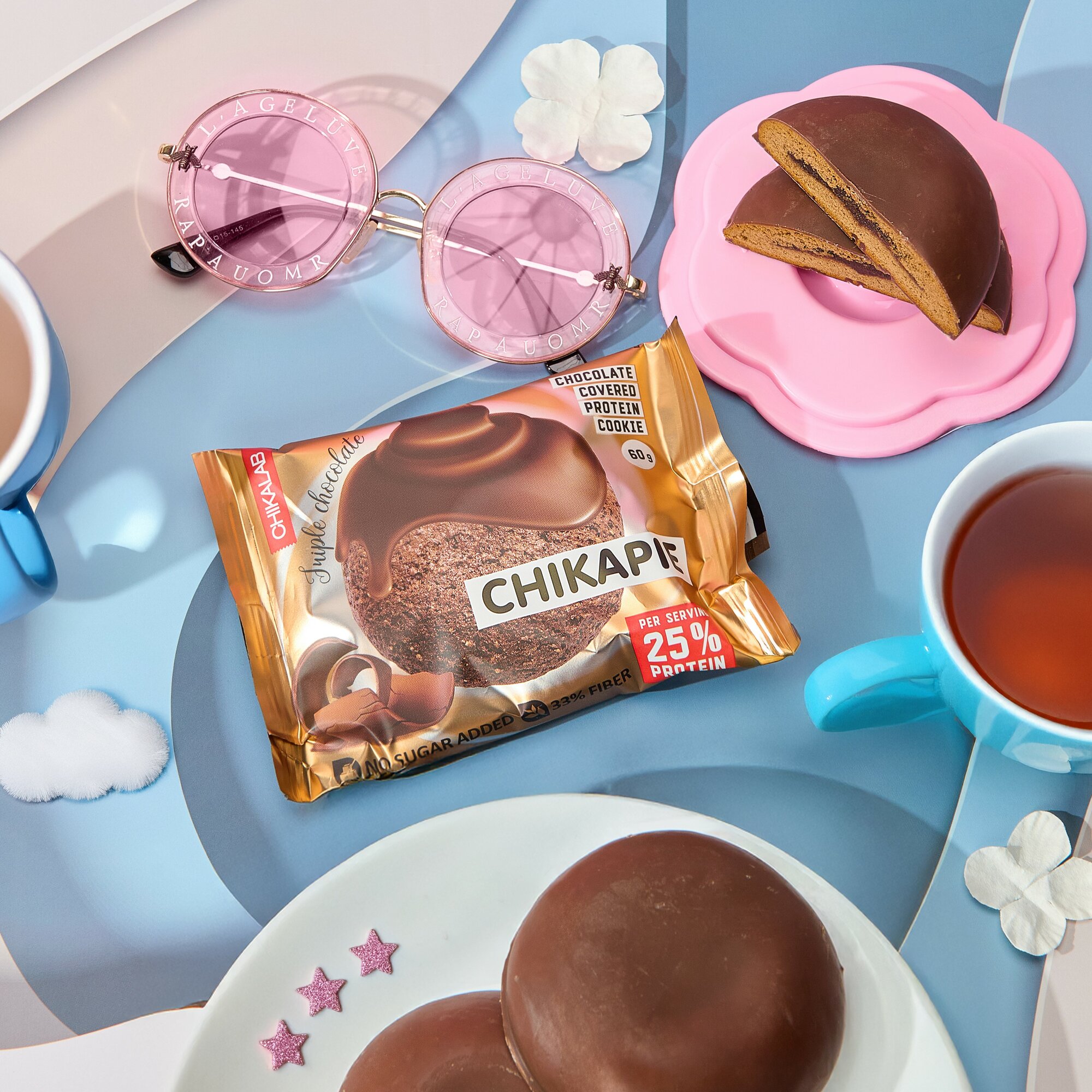 CHIKALAB CHIKAPIE Протеиновое печенье без сахара в шоколаде с начинкой "Тройной шоколад", 9шт х 60г