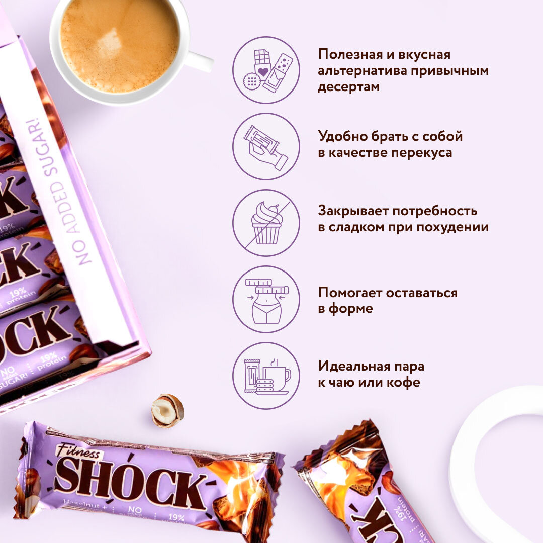 Протеиновые батончики без сахара FitnesSHOCK Хрустящий фундук-ваниль, 50гр, 12 шт