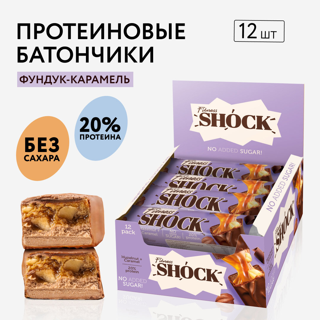 Купить Протеиновые батончики без сахара Фундук-карамель FitnesSHOCK, 50 гр х 12 шт