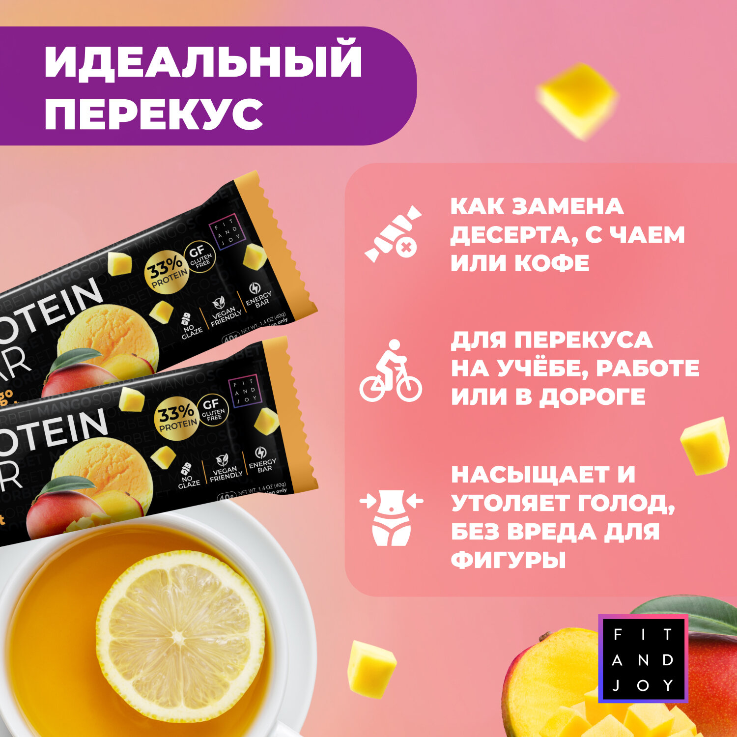 Купить Протеиновый батончик без глазури Fit and Joy набор для похудения 16шт пп десерт вкус манговый сорбет