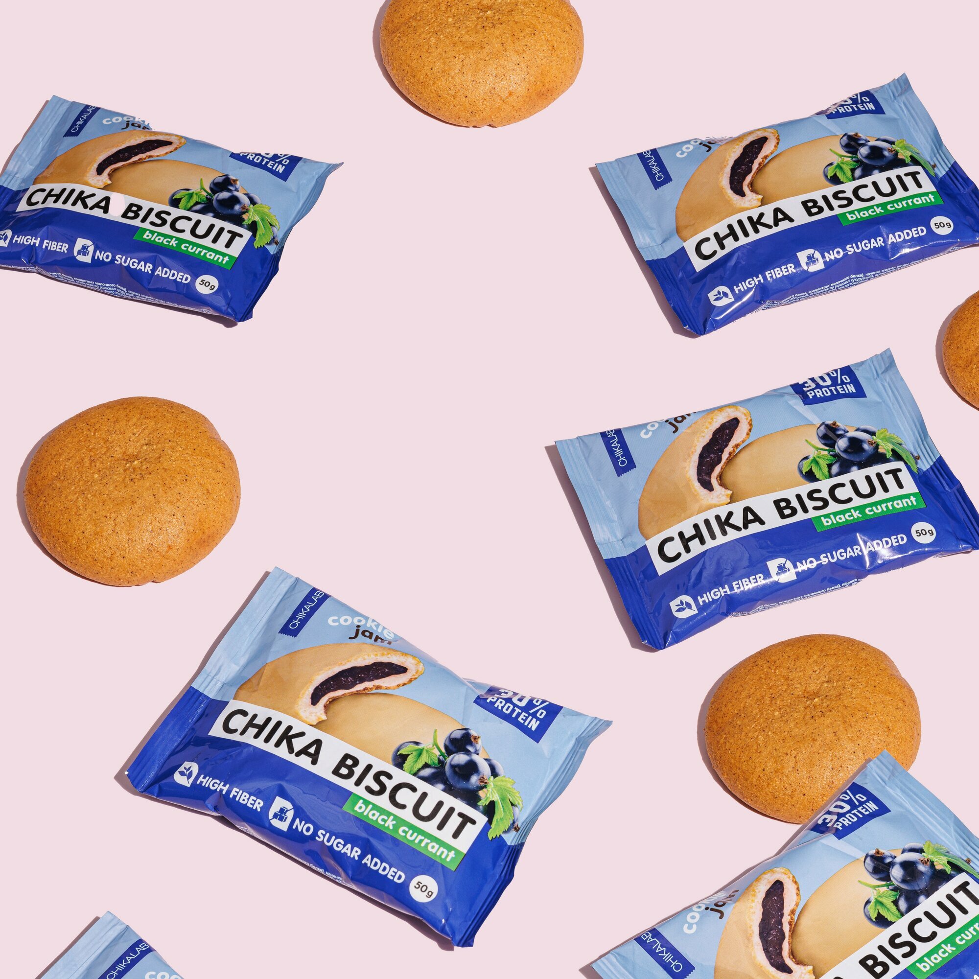 Bombbar, CHIKALAB, Chika Biscuit протеиновое печенье с начинкой, упаковка 9шт по 50г (черная смородина)