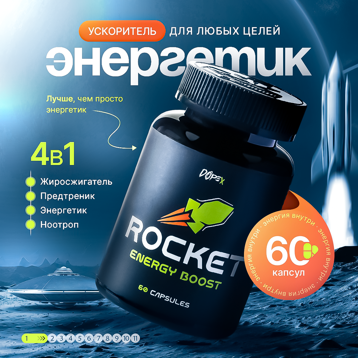 Ниже Вы можете прочитать отзывы на Энергетик "DOPEX ROCKET", жиросжигатель, предтренировочный комплекс, 60 капсул, для мужчин и женщин, ознакомится с подробными характеристиками, посмотреть интересные обзоры и фотографии на Энергетик "DOPEX ROCKET", жиросжигатель, предтренировочный комплекс, 60 капсул, для мужчин и женщин.