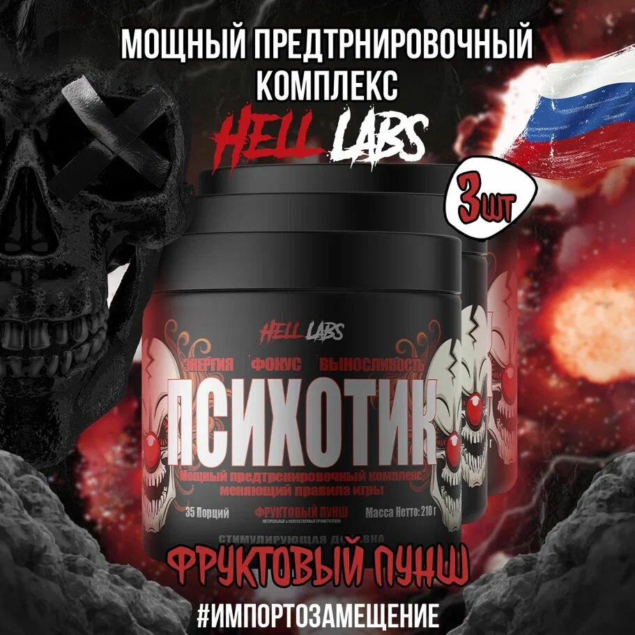 Купить Hell Labs Psychotic 35serv 3шт (Фруктовый пунш)