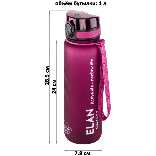 Бутылка для воды / спортивная бутылка / питьевая бутылка / для холодных и горячих напитков 1000 мл 7,8х7,8х28,5 см Elan Gallery Style Matte, бургундия