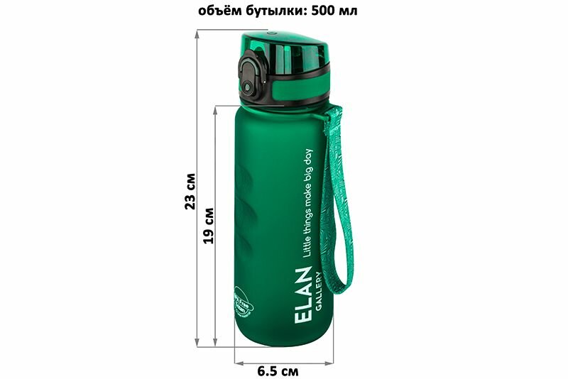 Бутылка для воды / спортивная бутылка / питьевая бутылка / для холодных и горячих напитков 500 мл 6,5х6,5х23 см Elan Gallery Style Matte,темно-зеленая