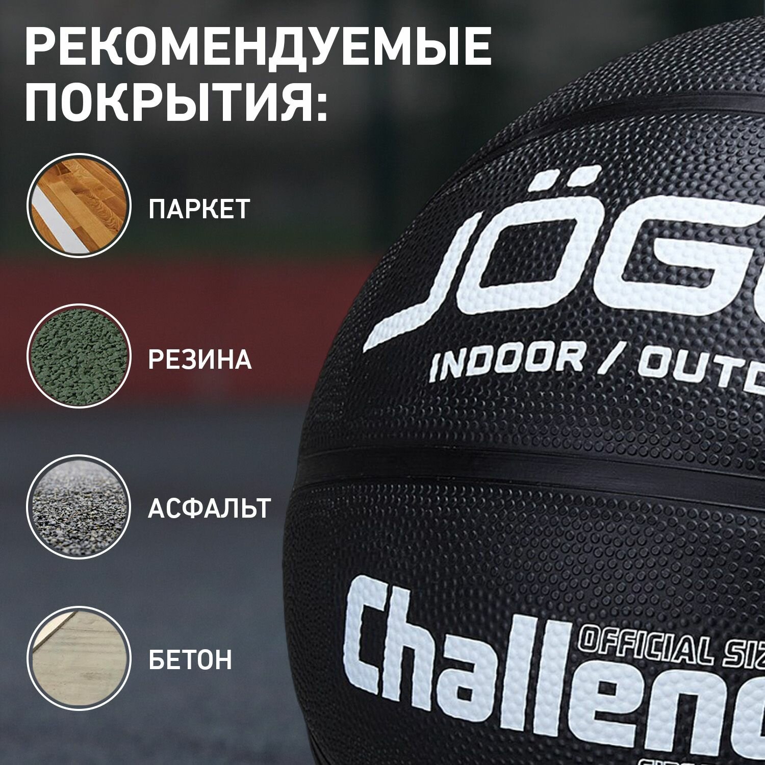 Баскетбольный мяч Jogel Challenger, цвет черный, размер 7