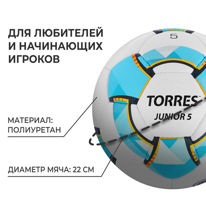 Купить Футбольный мяч TORRES Junior-5, F323805, ручная сшивка, 32 панели, р. 5, PU