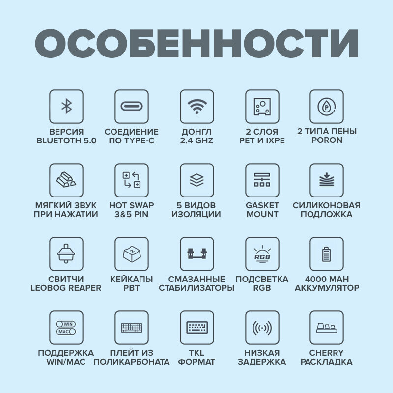СохранитьБеспроводная механическая клавиатура Epomaker x Aula F75 Blue Русская раскладка интересное: