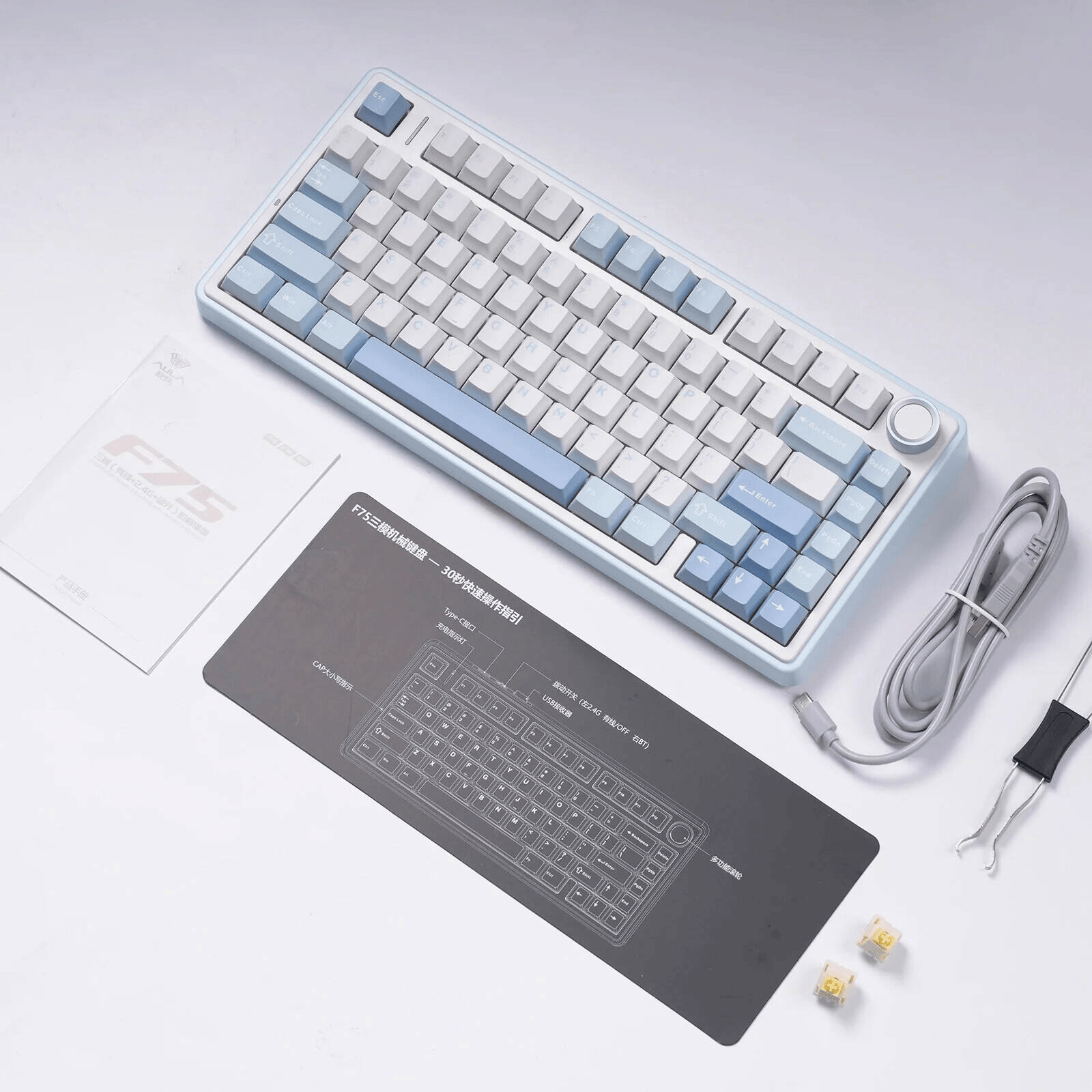 Беспроводная механическая клавиатура Epomaker x Aula F75 Blue, 75%, Bluetooth 5.0, 2.4Ghz, USB Type-C, Английская раскладка