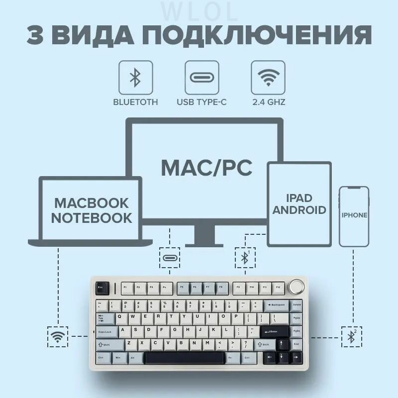 Беспроводная AULA F75 механическая клавиатура, Bluetooth /2.4GHz/ USB - C, русская гравировка
