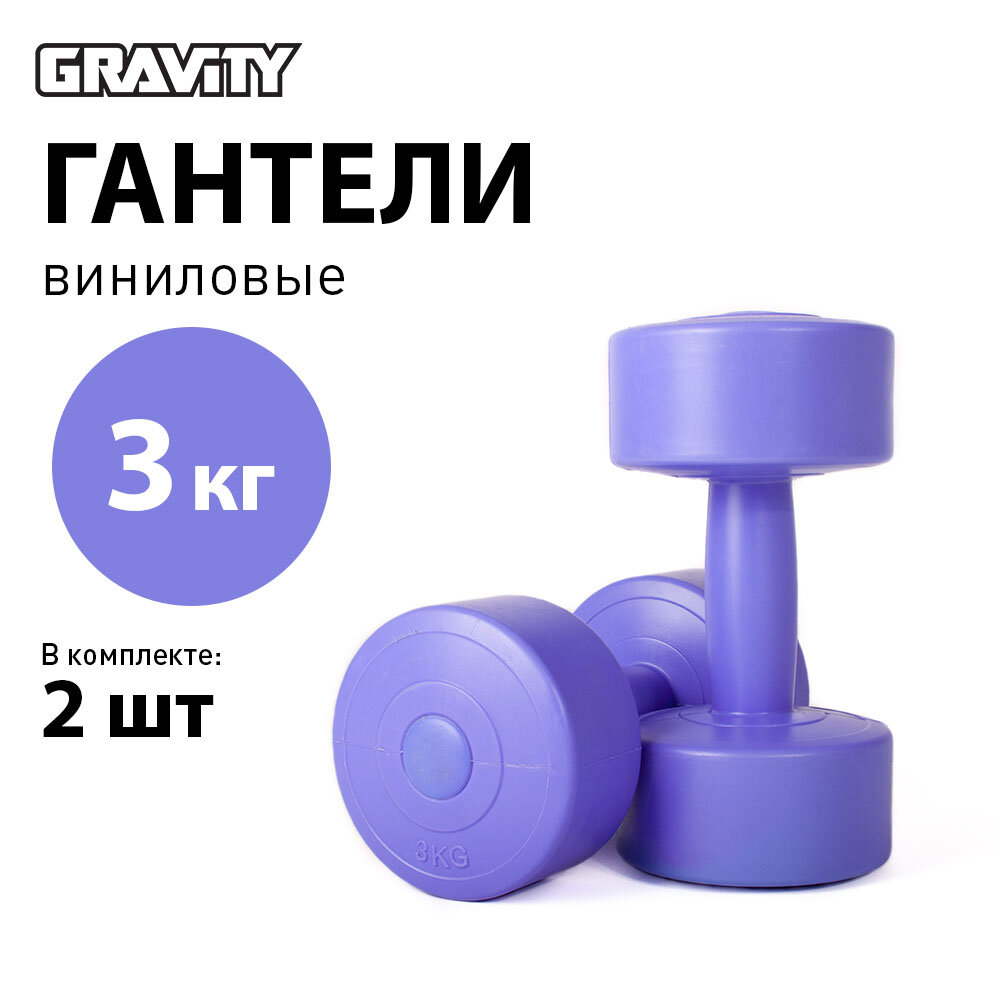 Виниловые гантели Gravity, круглые, 3 кг, пара, сиреневый интересное: