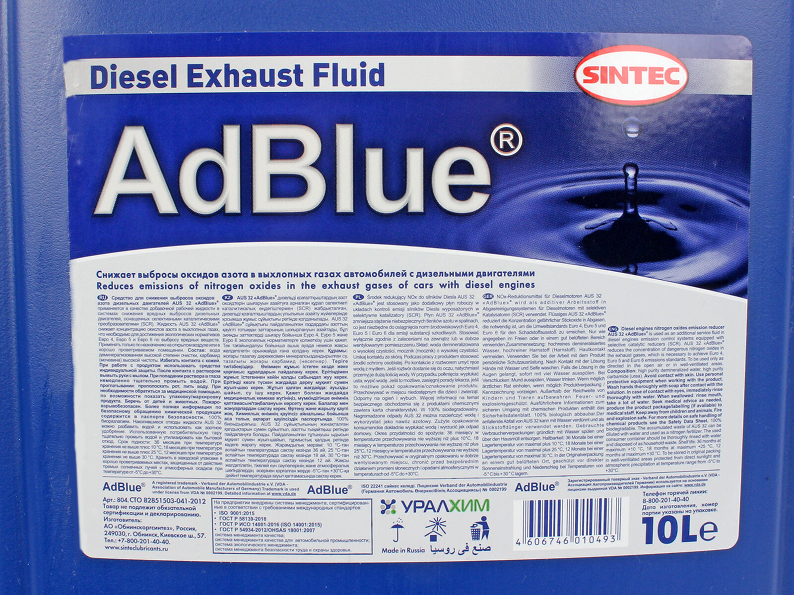 AdBlue Diesel Exhaust Fluid Водный раствор мочевины 10л. Sintec 804