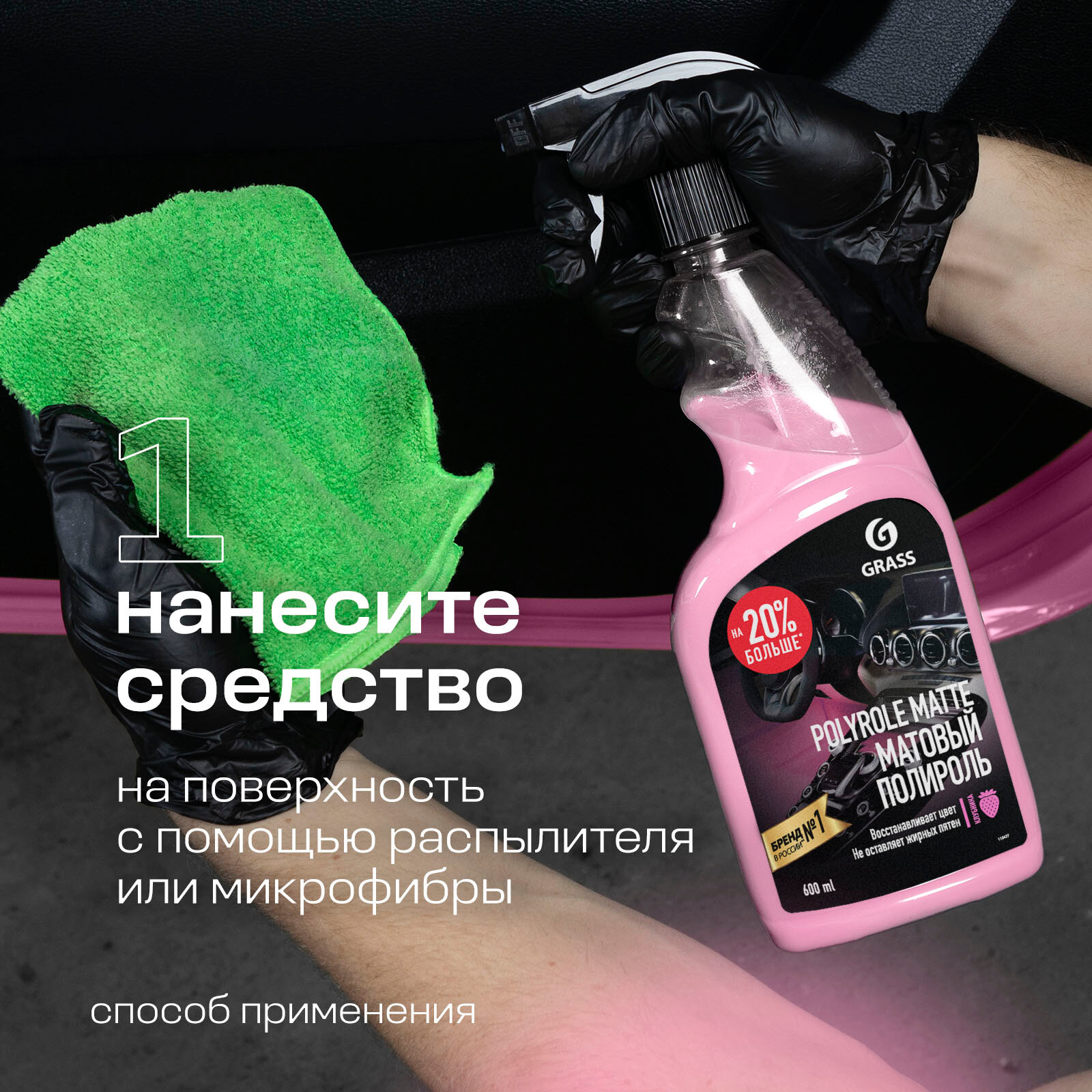 GRASS/ Полироль для пластика автомобиля Polyrole Matte Bubble // Очиститель пластика матовый, бабл гам, 600 мл.