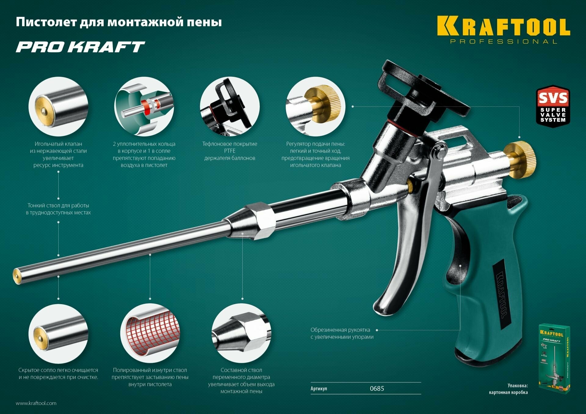 Ниже Вы можете прочитать отзывы на Пистолет для монтажной пены тефлоновый ProKraft, KRAFTOOL (0685), ознакомится с подробными характеристиками, посмотреть интересные обзоры и фотографии на Пистолет для монтажной пены тефлоновый ProKraft, KRAFTOOL (0685).