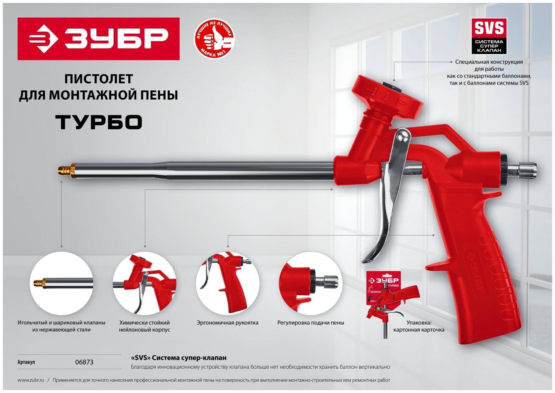 Нейлоновый пистолет для монтажной пены ЗУБР Турбо (06873_z01) интересное: