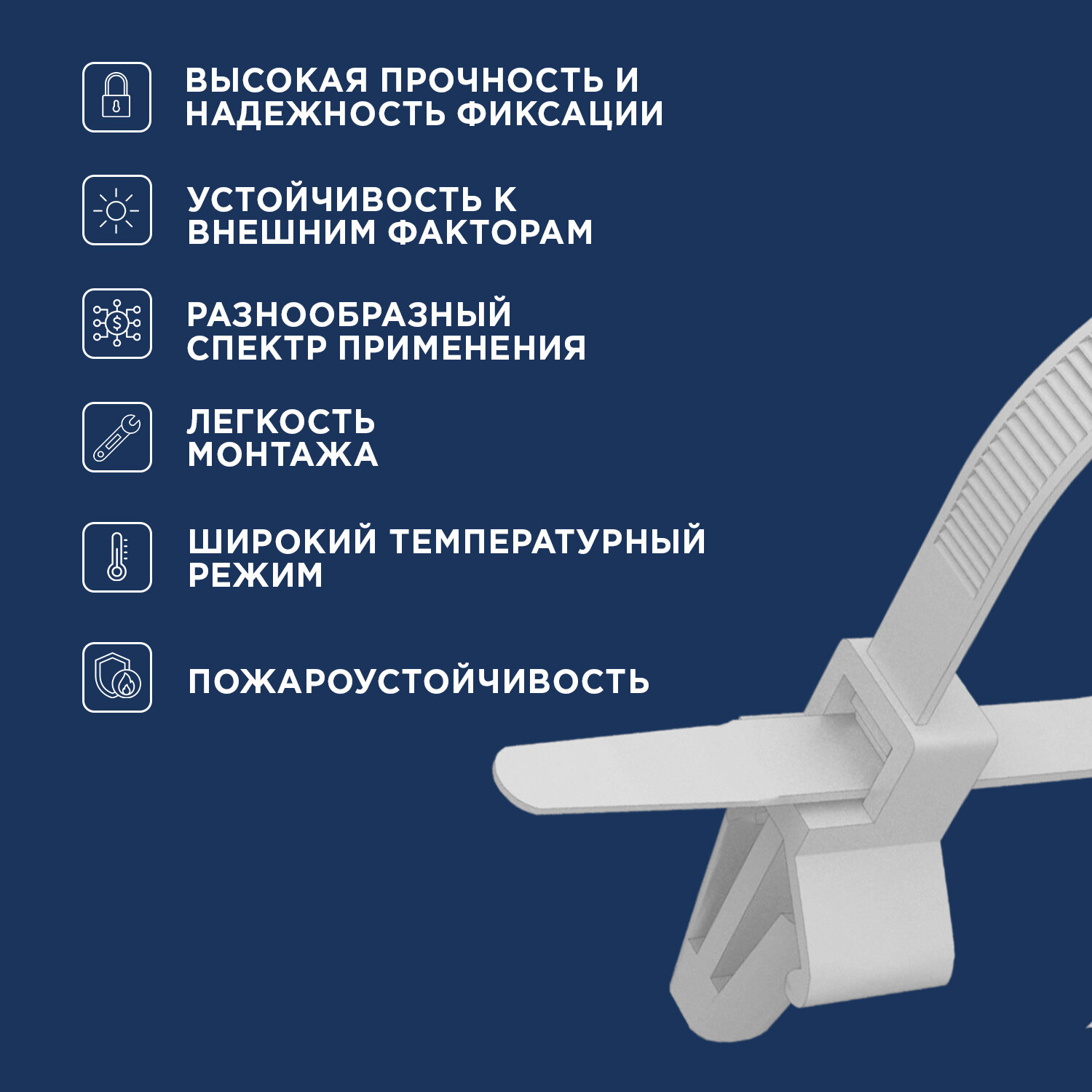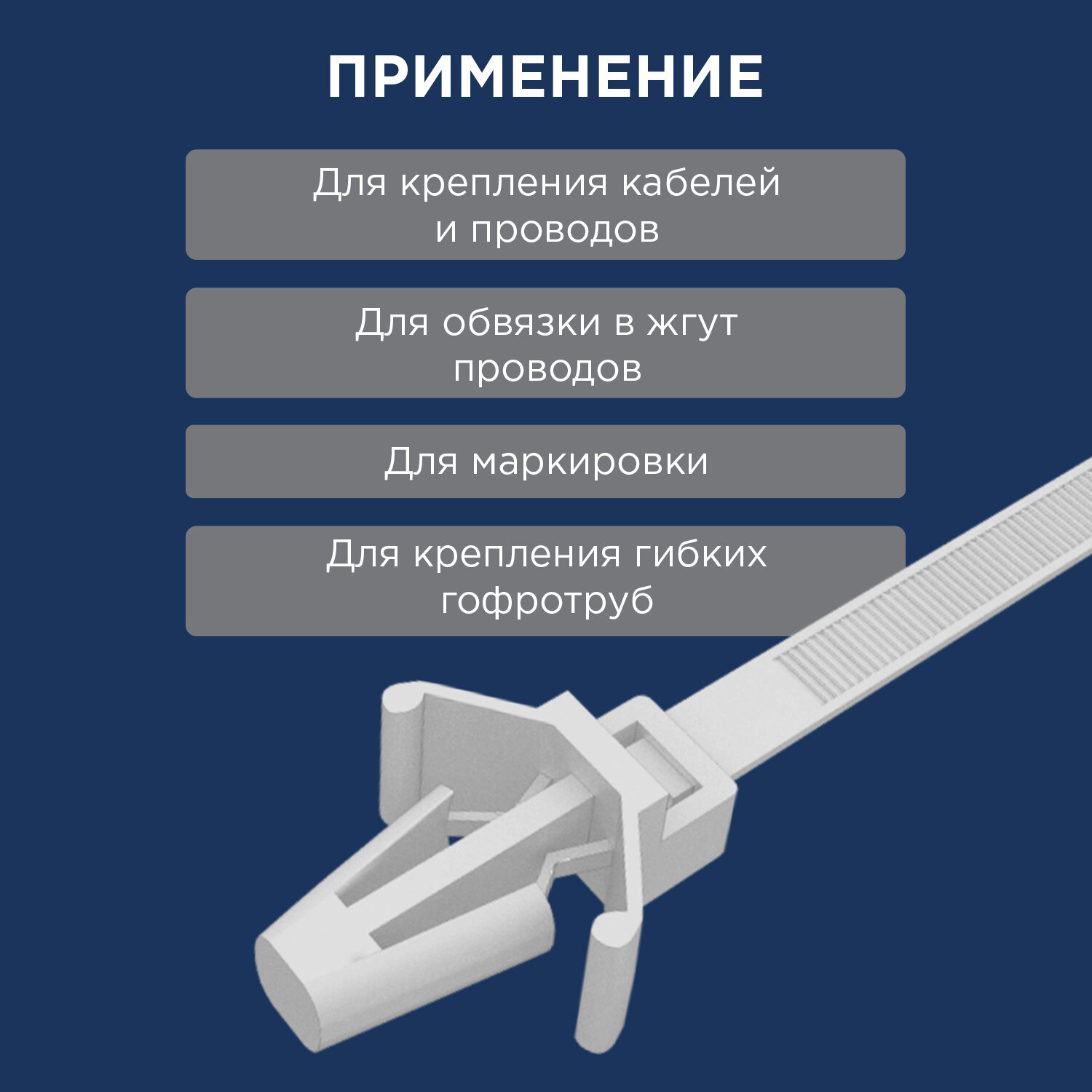 Купить Хомут с крепежным пистоном REXANT, нейлоновая кабельная стяжка, 100x2,5мм, 100 штук