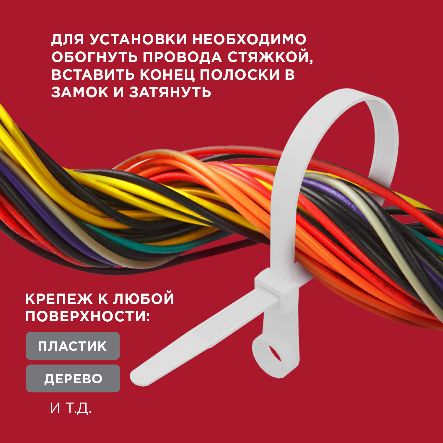 Купить Стяжка нейлоновая REXANT под винт 200x4,3мм, белый, 100 штук в упаковке