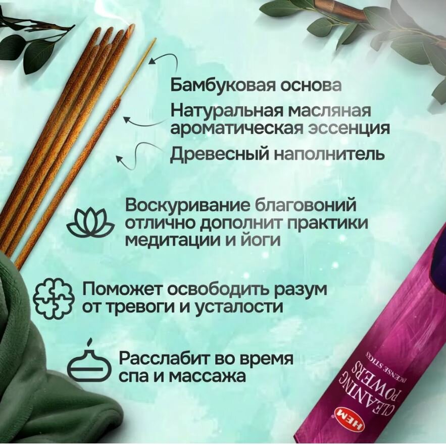 Набор HEM Очищающая Энергия - 2 упаковки по 20 шт - ароматические благовония, палочки, Cleaning Powers - аромат сладковатый, цветочно-древесный - Hexa ХЕМ