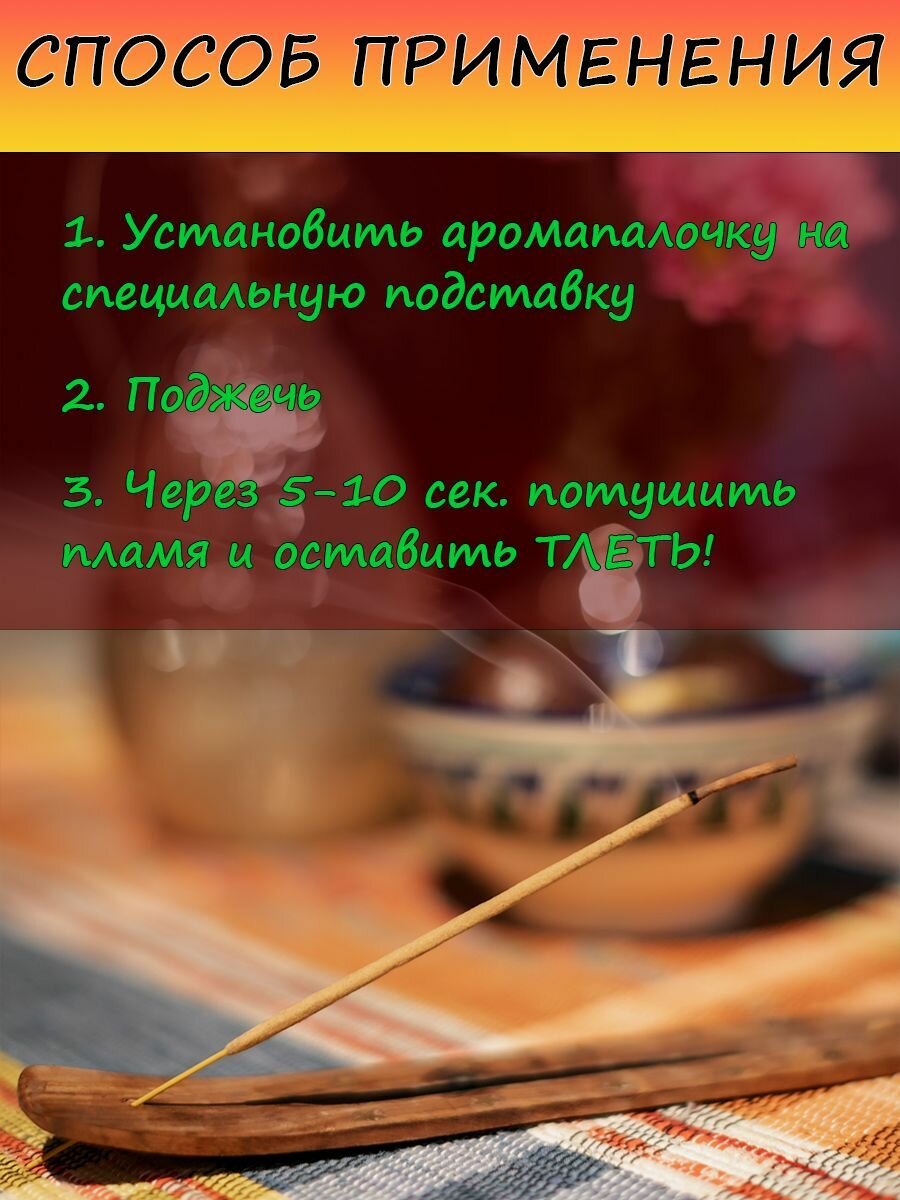 | Комплектация | Палочки ароматические 6 упаковок по 20 штук |