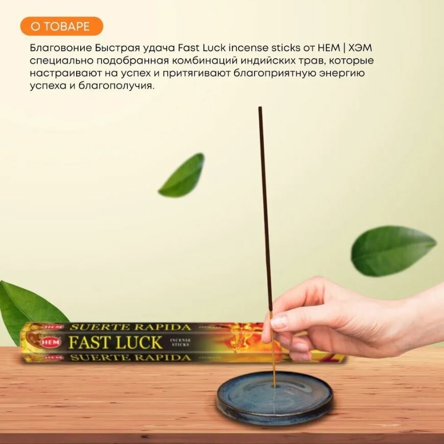 Купить Благовония Hem Fast Luck Сандал, Пальмароза, Пачули, Мандарин, (Быстрая удача), 20 палочек