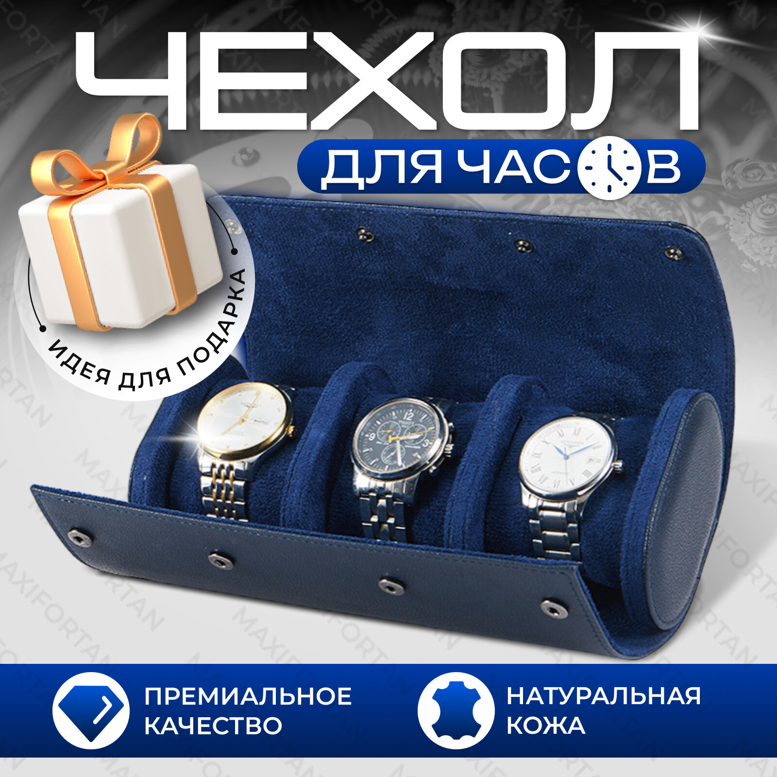 Чехол F-MAX из высококачественной натуральной кожи для хранения часов с 3 съемными отделениями и ручной отделкой, темно-синий