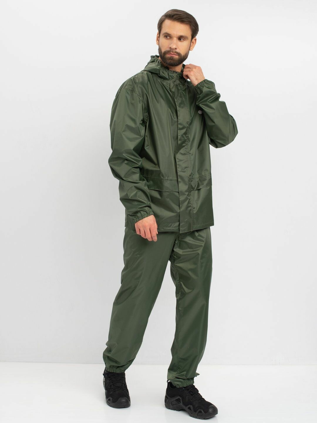 Костюм-дождевик мужской Huntsman ВВЗ Склон-2 летний ветровлагозащитный туристический, для рыбалки и охоты зеленый, ткань таффета рипстоп (р.48-50/176)