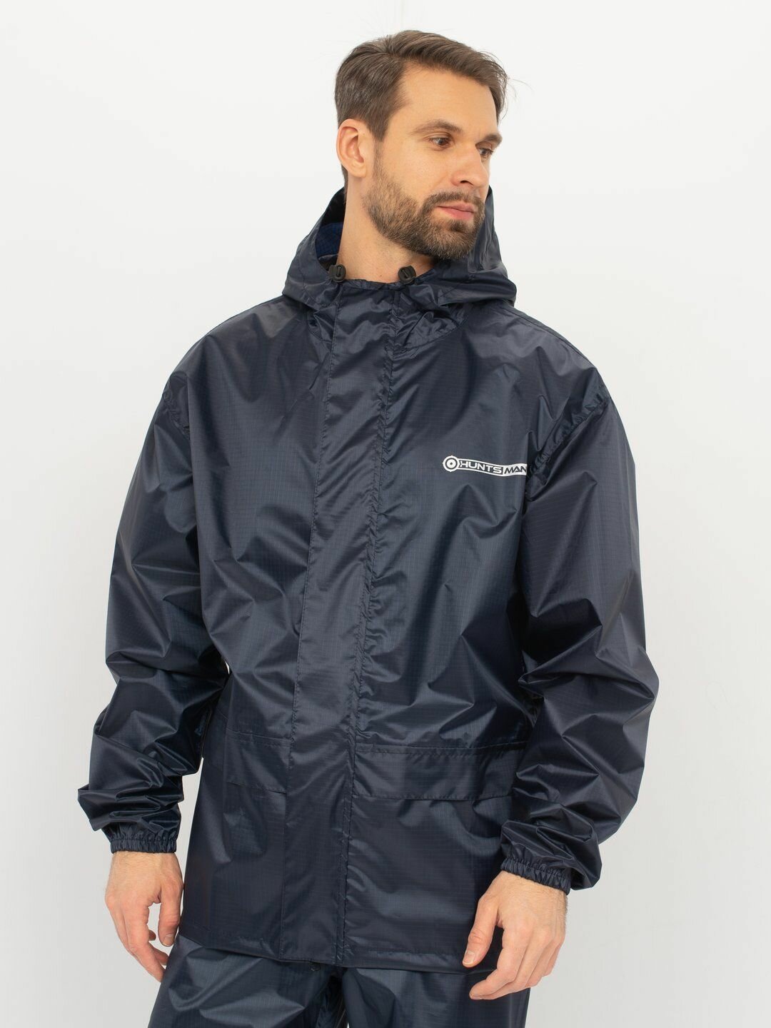 Костюм-дождевик мужской Huntsman ВВЗ Склон-2 летний ветровлагозащитный туристический, для рыбалки и охоты темно-синий, таффета рипстоп (р.44-46/170)