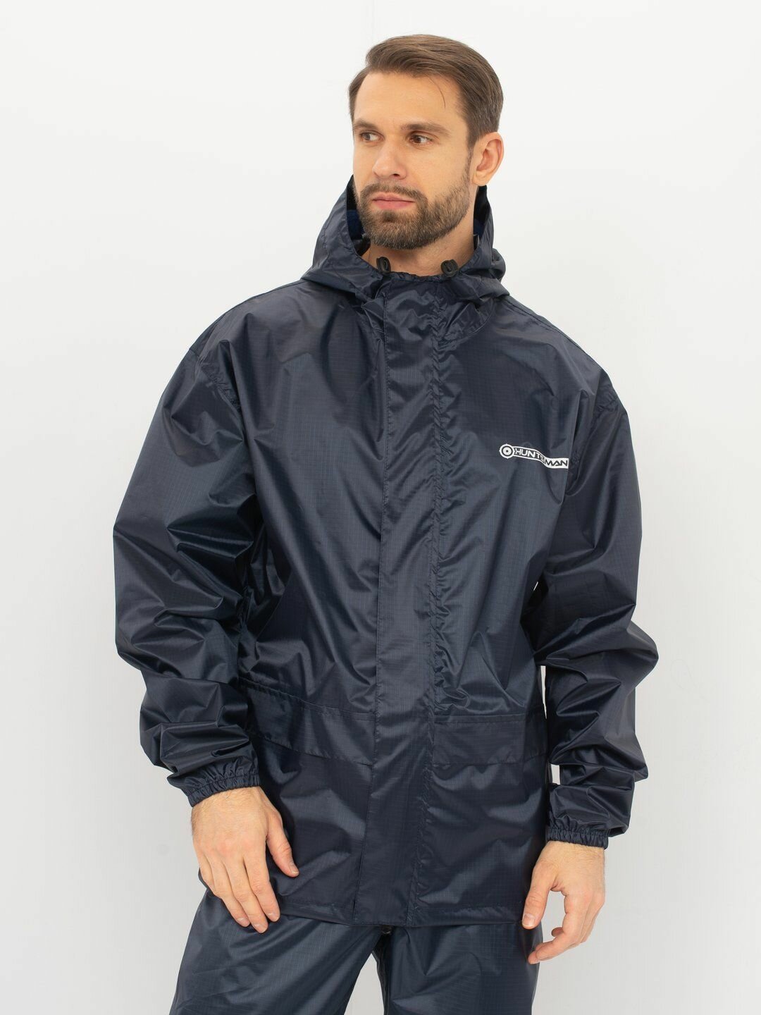 Костюм-дождевик мужской Huntsman ВВЗ Склон-2 летний ветровлагозащитный туристический, для рыбалки и охоты темно-синий, таффета рипстоп (р.48-50/176)