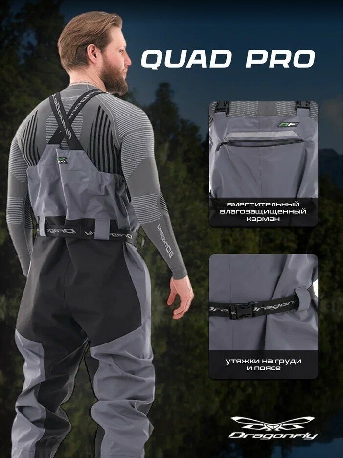 Вейдерсы летние мужские Dragonfly QUAD PRO для активного отдыха black 2023 мембранные [XL/]