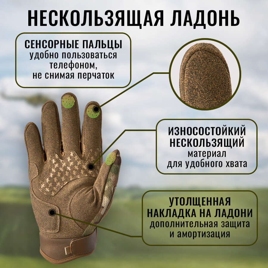Перчатки тактические мужские Armsport, защитного цвета, XL