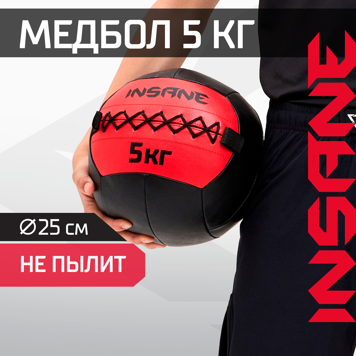 Медбол IN24-WB100, 5 кг, красный Insane ЦБ-00003212