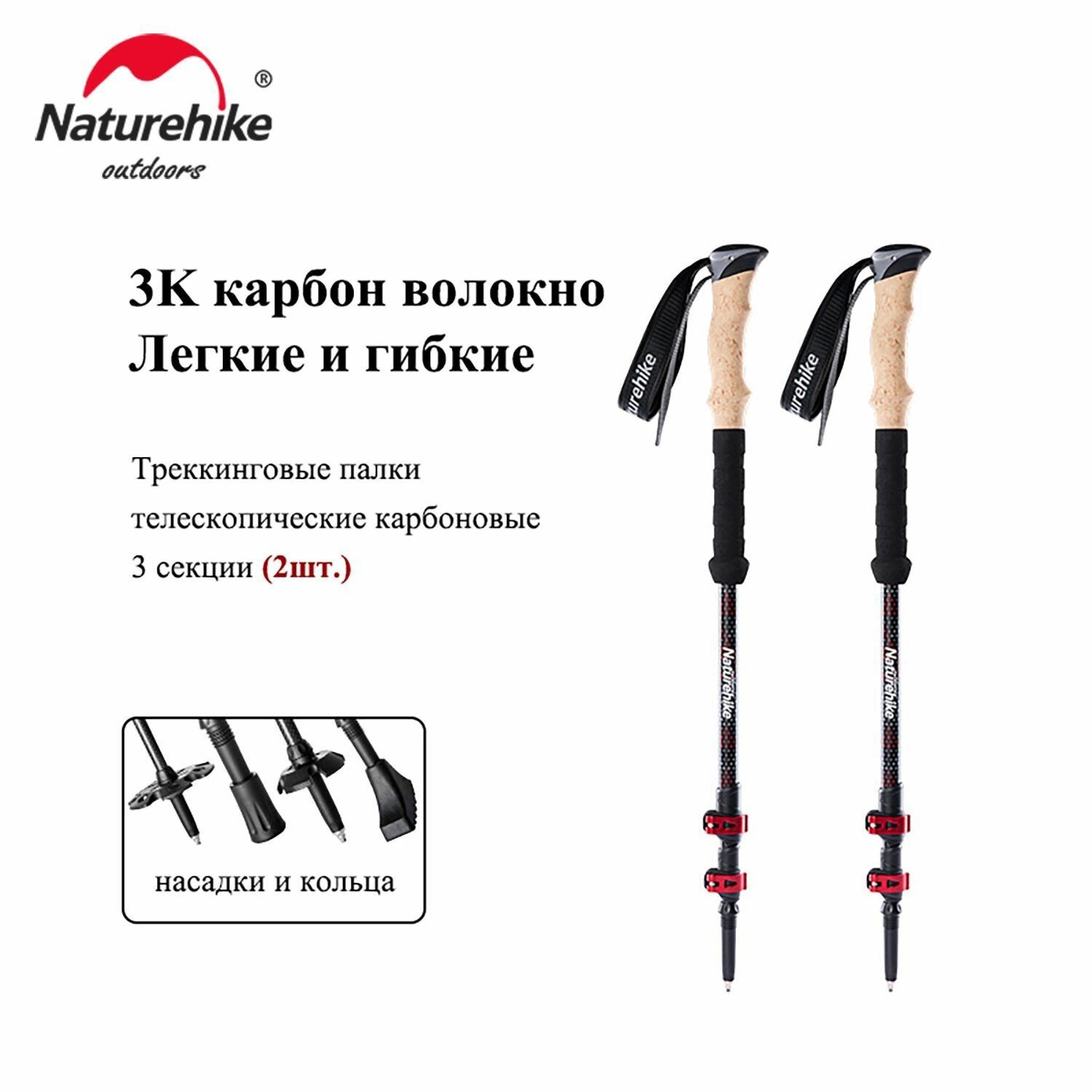 Naturehike 2шт Треккинговая палка из углеродного волокна Телескопические трости для ходьбы Палки для фойе палатки Углеродная палка для скалолазания Походные принадлежности